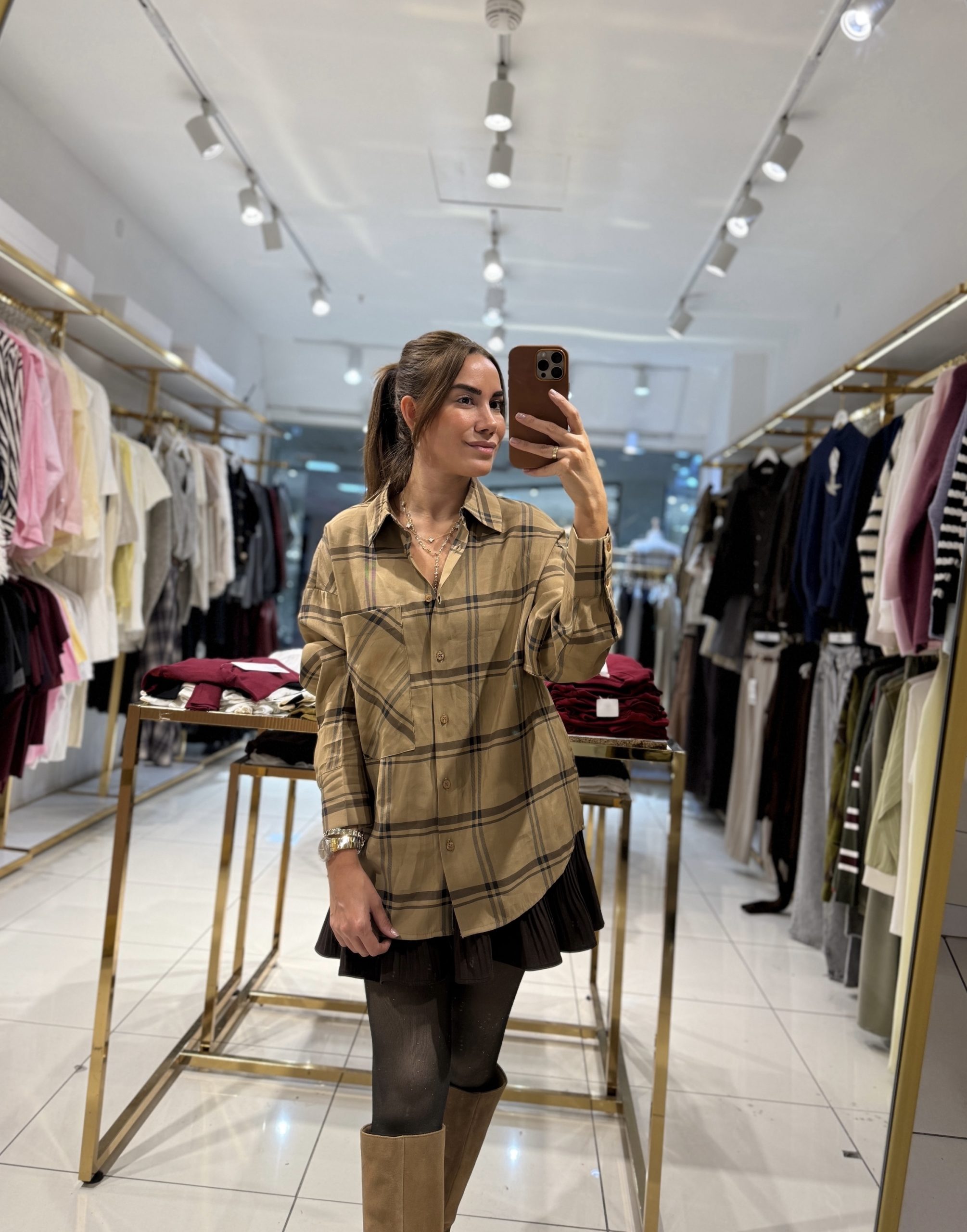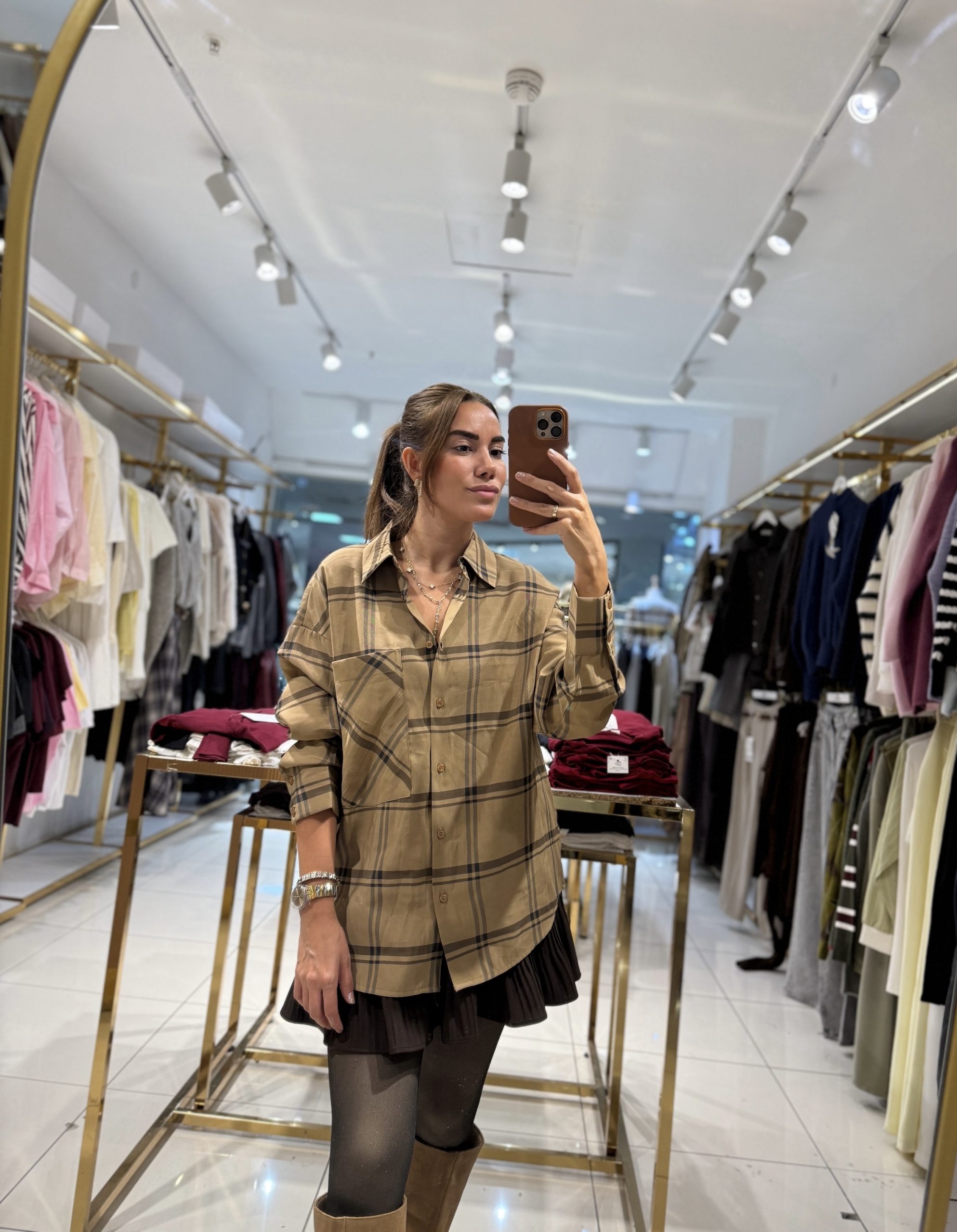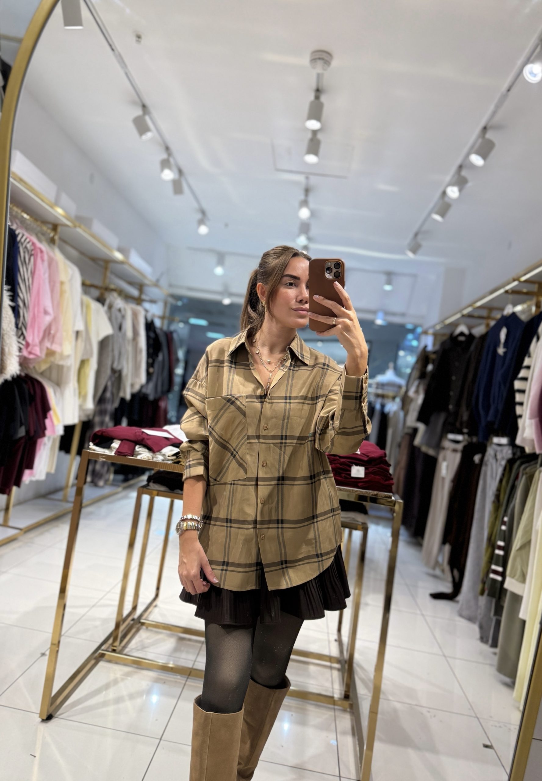 Ekose Desenli Oversize Gömlek