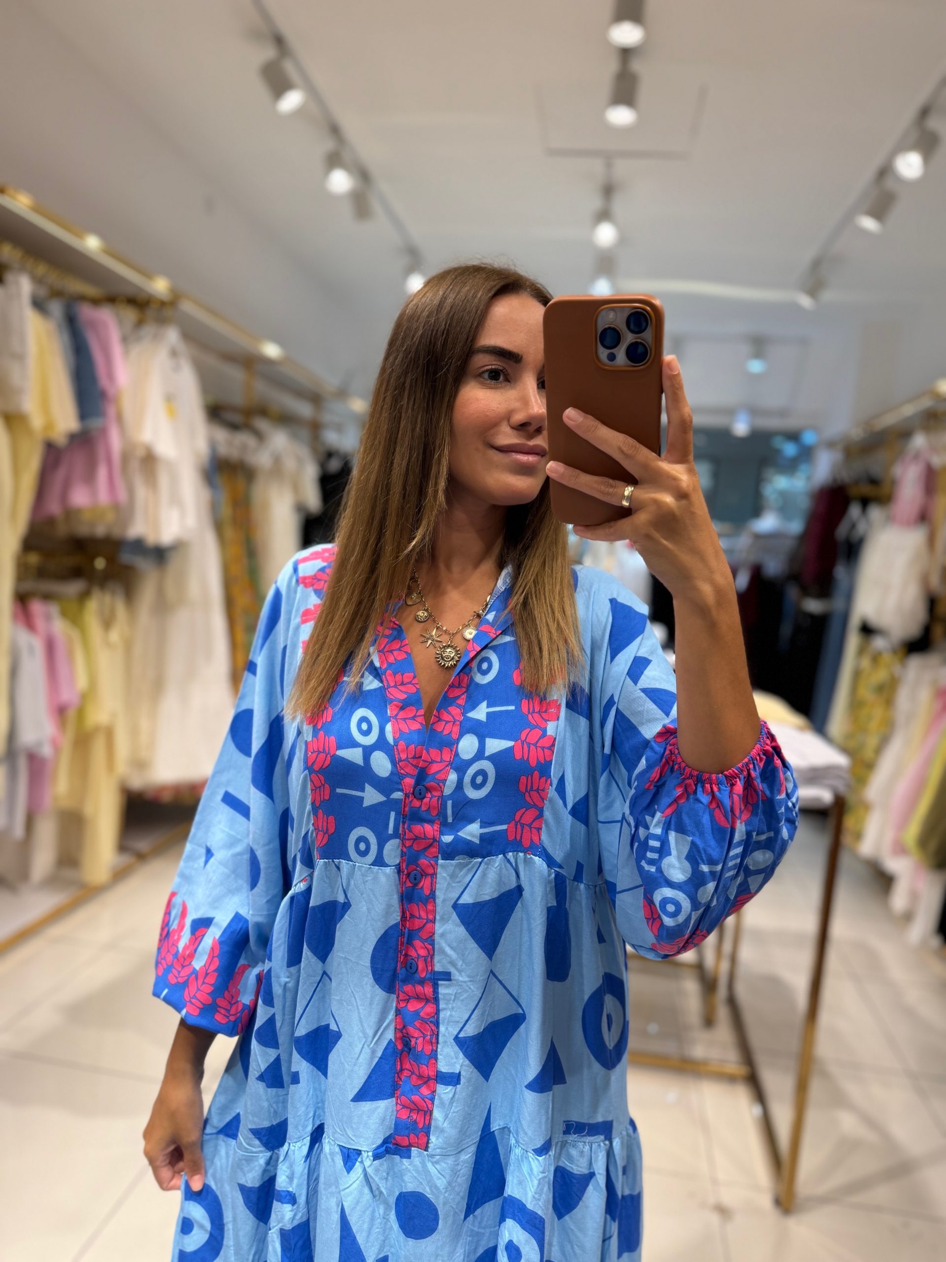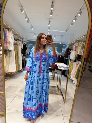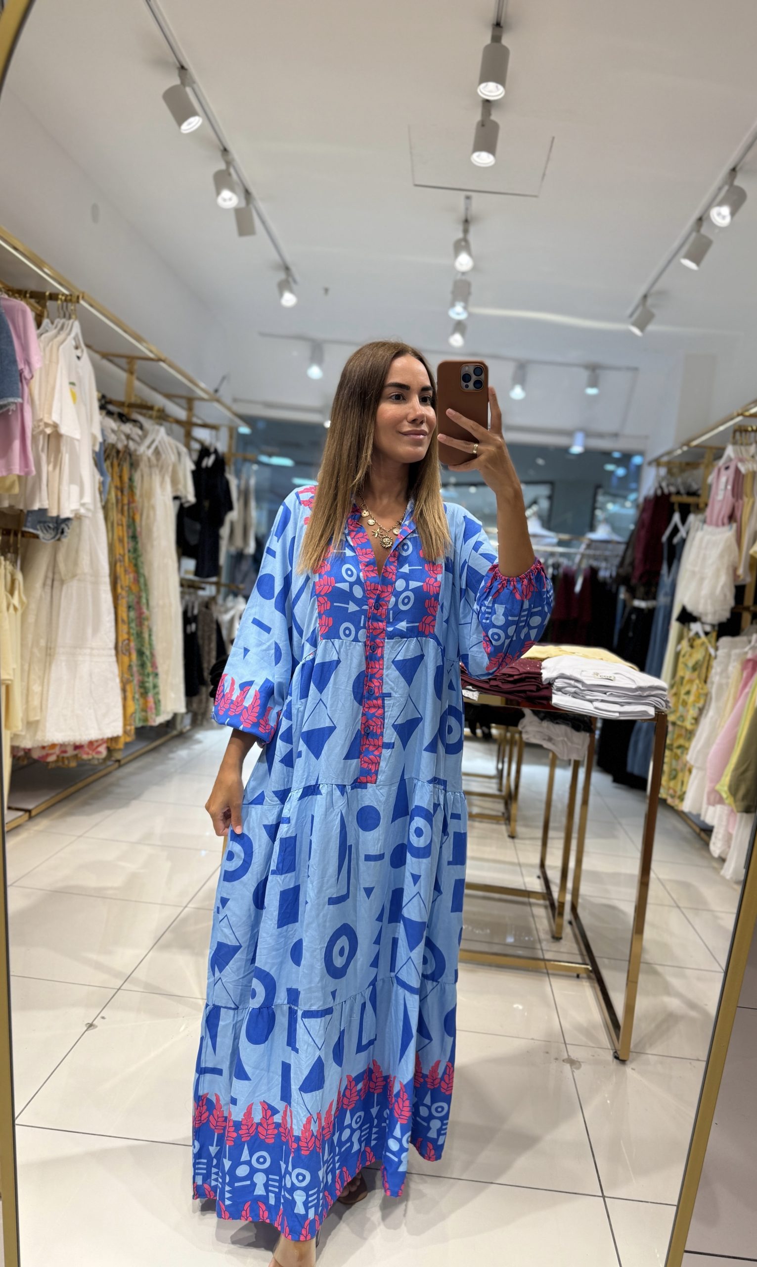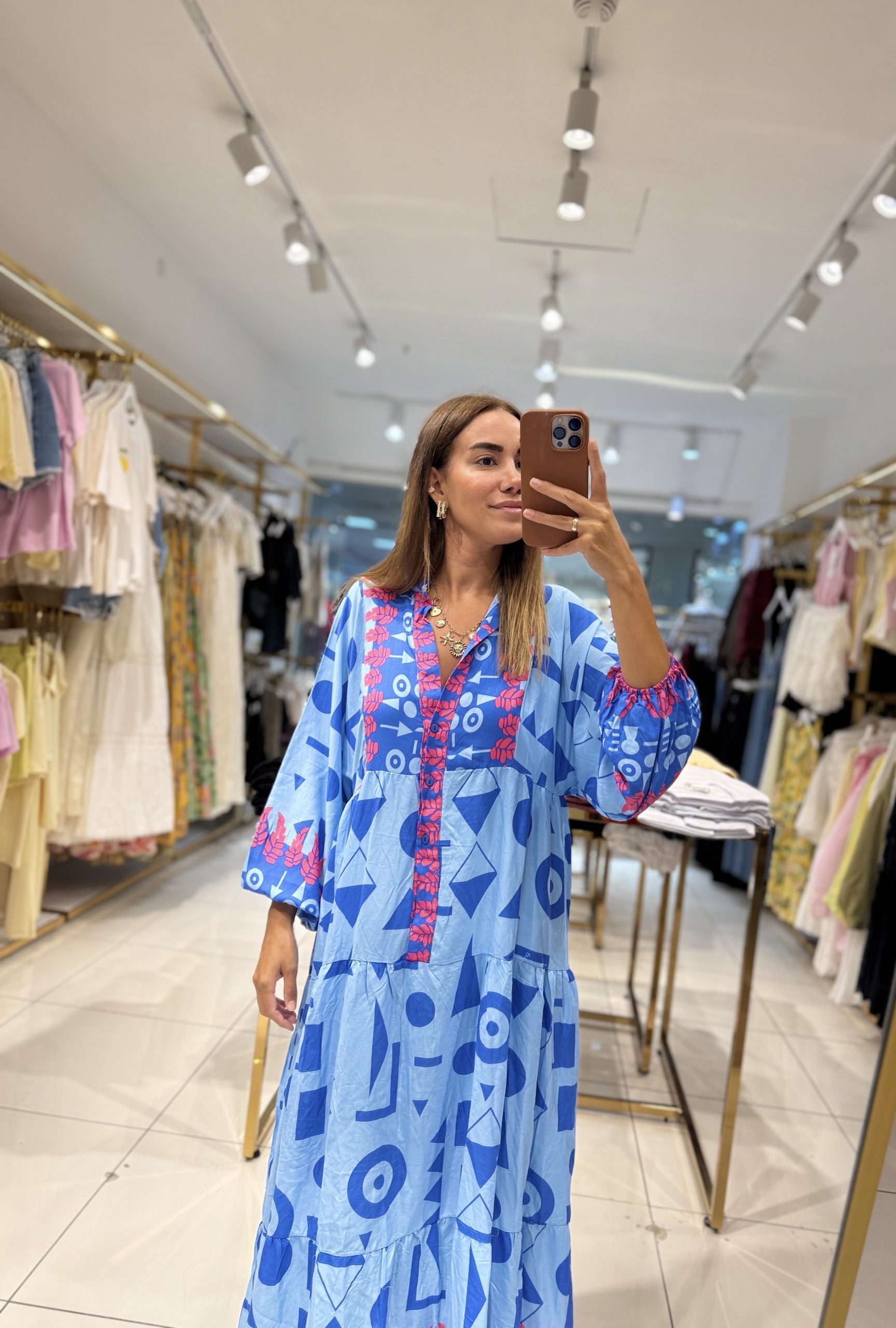 VİSKON OVERSİZE DESENLİ ELBİSE