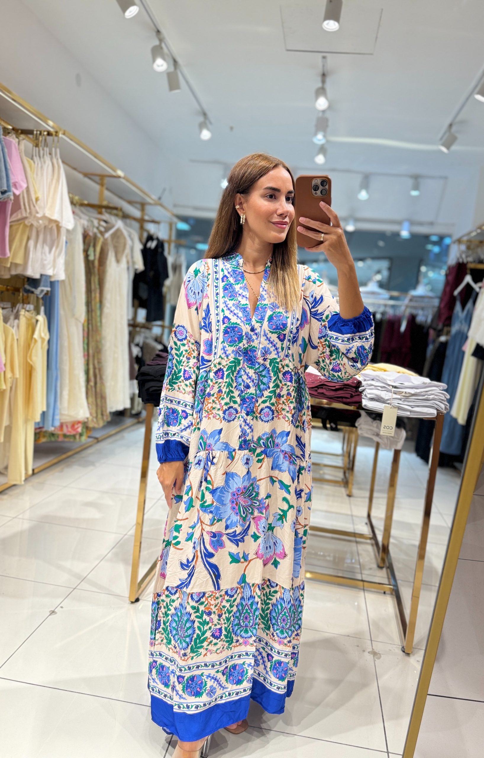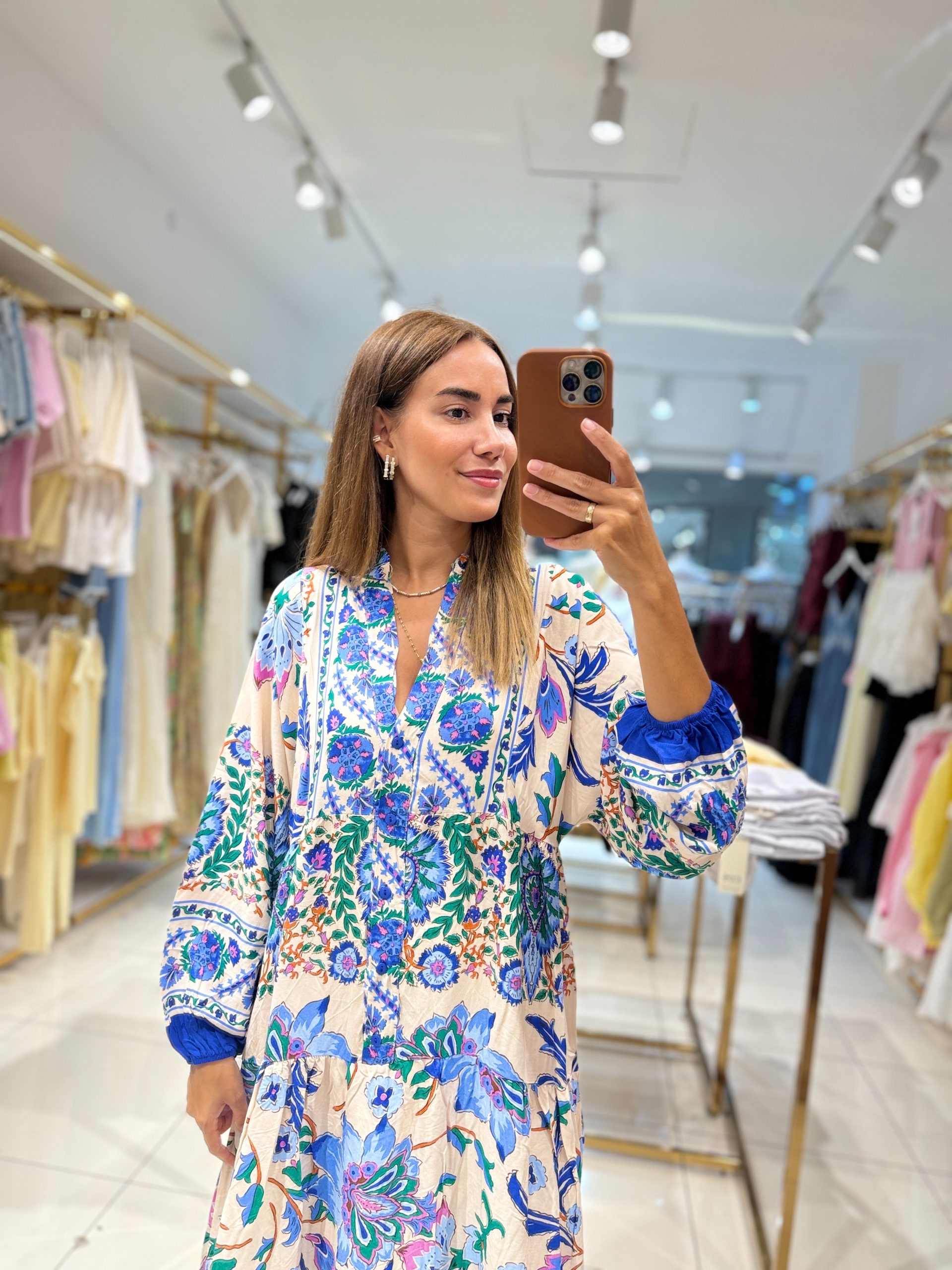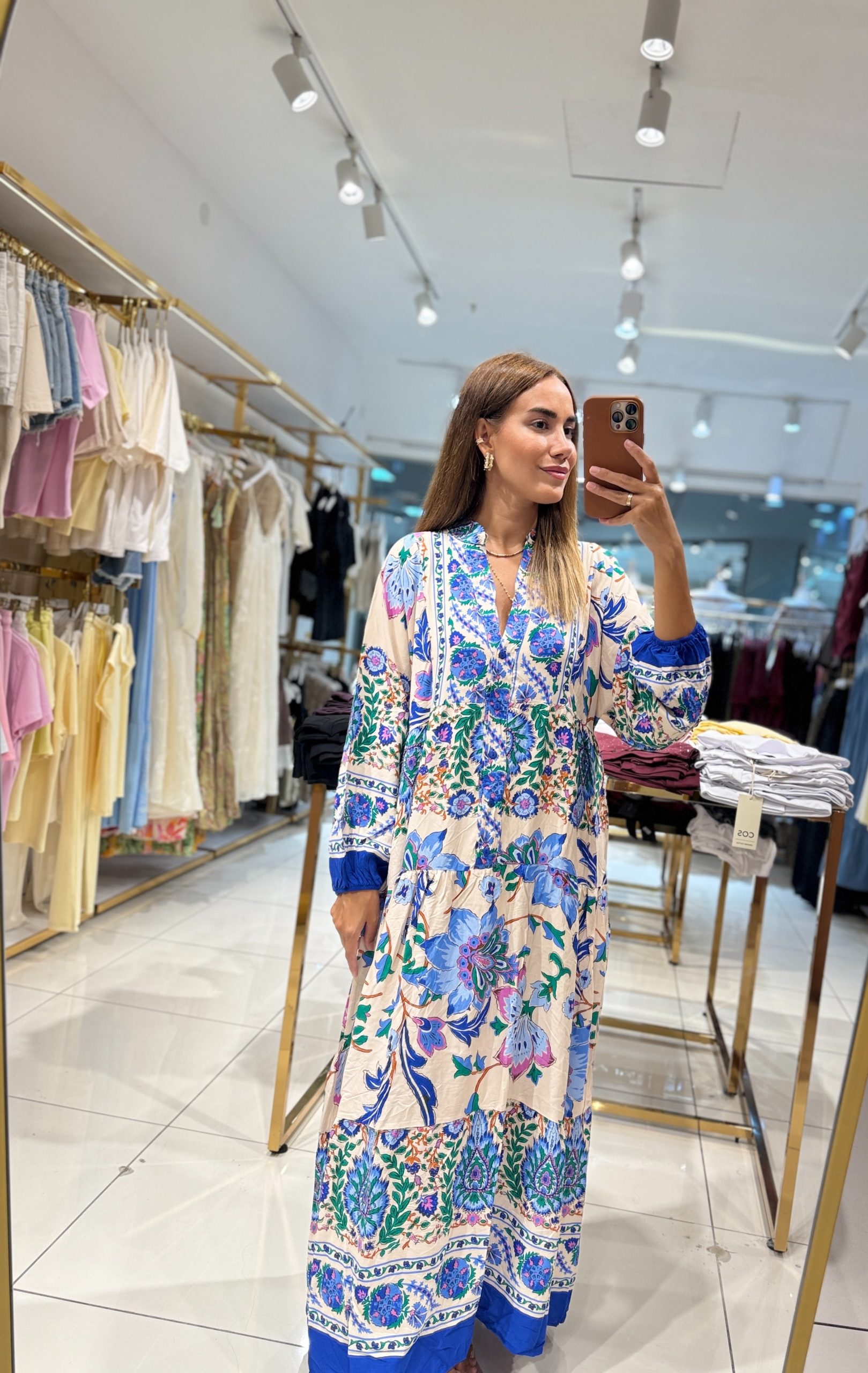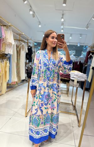 VİSKON OVERSİZE DESENLİ ELBİSE